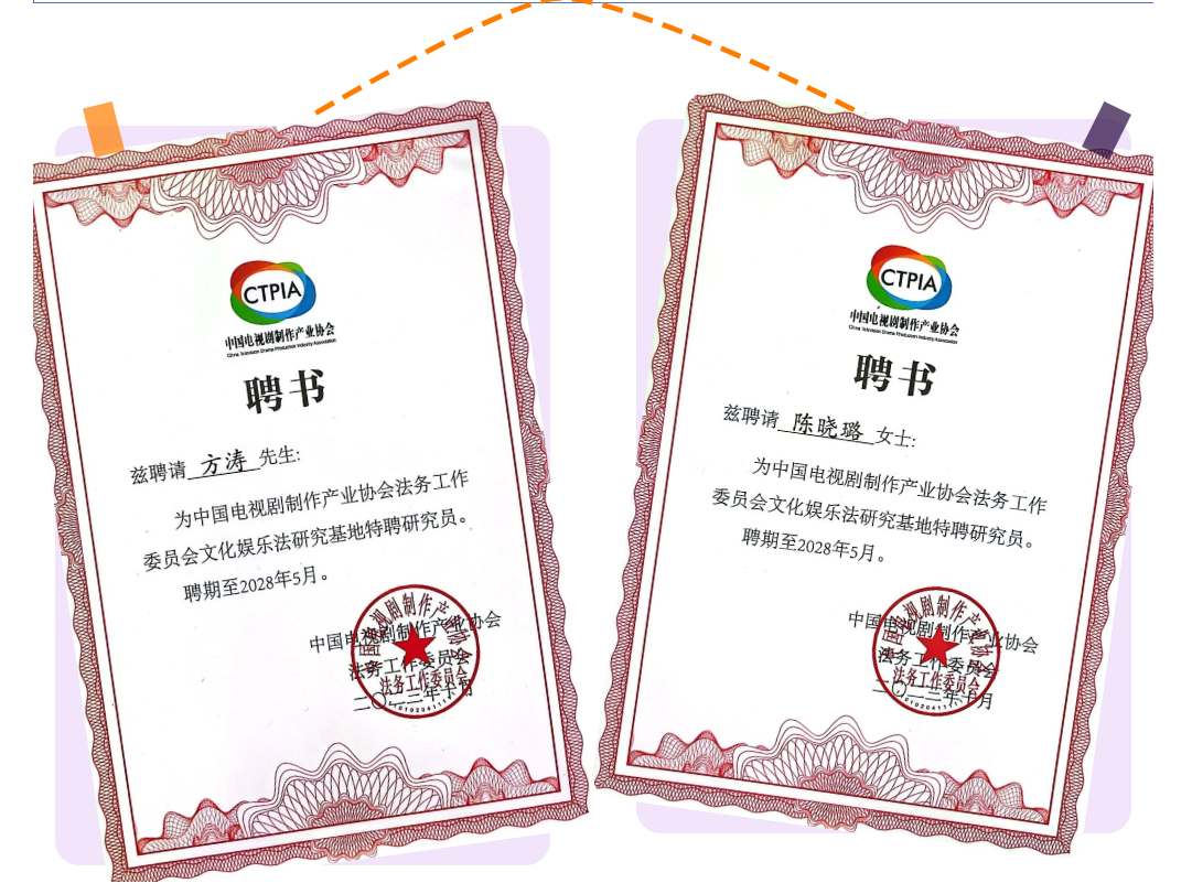 本次论坛活动中,浙江诚如律师事务所执行主任陈晓璐律师在第二单元“影视娱乐法实务问题”环节做了“MCN机构合规的三维视角”主题分享。此外,浙江诚如律师事务所主任方涛律师、执行主任陈晓璐律师被中国电视剧制作产业协会法务工作委员会聘为文化娱乐法研究基地特聘研究员。