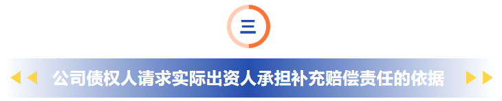 笔者结合各地法院指导意见,认为公司债权人要求实际出资人承担补充赔偿责任的主要依据如下: