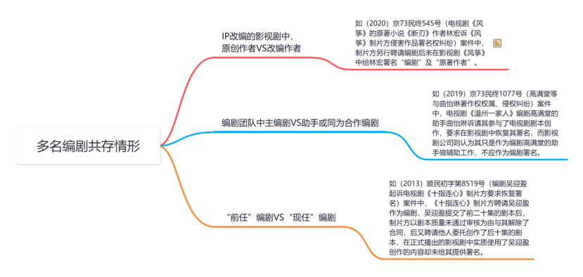 (一)笔者检索了大量编剧署名权纠纷案件,发现编剧主张的署名权受侵犯情形主要有以下两种: