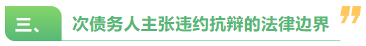 笔者个人认为次债务人在案件中以债务人存在违约进行抗辩是不属于次债务人可以抗辩的内容,债务人违约与否不是一个单纯的抗辩,而是次债务人的主张,是一个待证的事实,如果违约行为是存在较大争议的,那么次债务人就不能在债权人代位权案件中以债务人存在违约为由进行主张抵销或是抗辩,因为在代位权的案件中,债权人并不因提起代位权案件而继受原债务人和次债务人的法律关系中的法律地位,债权人无法举证、质证,如果需要在代位权案件中进行查明,明显背离了债权人的举证原则,即债权人只需要提供债务人对次债务人有合法非专属于本人且到期的债权即可,超出了债权人的举证责任,次债务人应当提起一个新的诉讼来解决违约行为的争议,同时次债务人还要承担举证不能的后果。