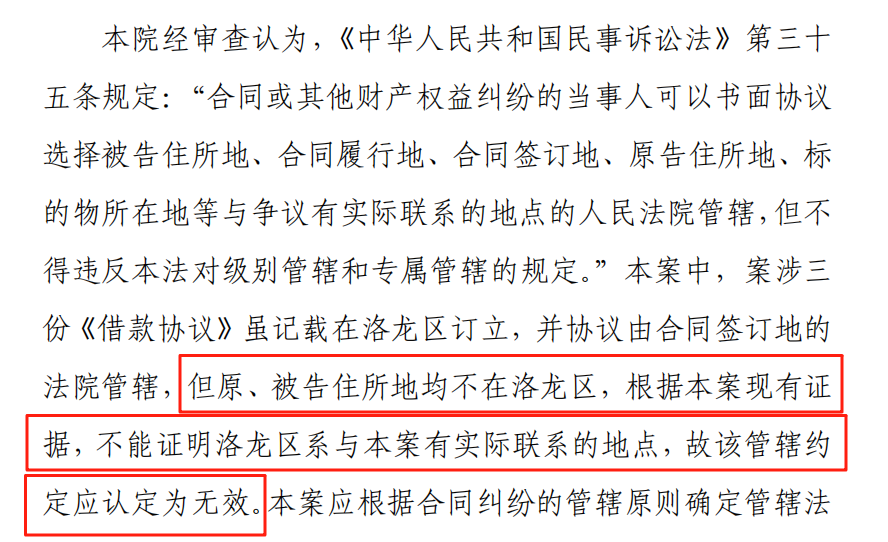 但需要注意区分的是,如合同约定的是“原告所在地法院管辖”,当检索发现合同签订时与起诉时“原告所在地”前后不一致的,应以起诉时的“原告所在地”确定管辖法院,即起诉时才能确定管辖的连接点。