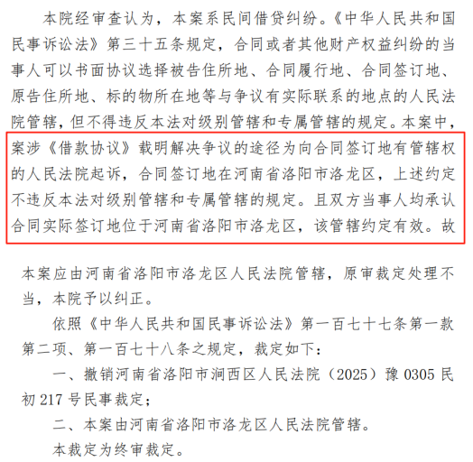 【参考案例】终审裁定:(2025)豫03民辖终76号《民事裁定书》