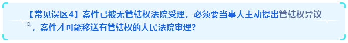 【正确适用】针对管辖权的审查系法院主动审查范畴,如受诉法院认为自己没有管辖权,将案件移送有管辖权的法院审理不以当事人申请管辖权异议为前提。